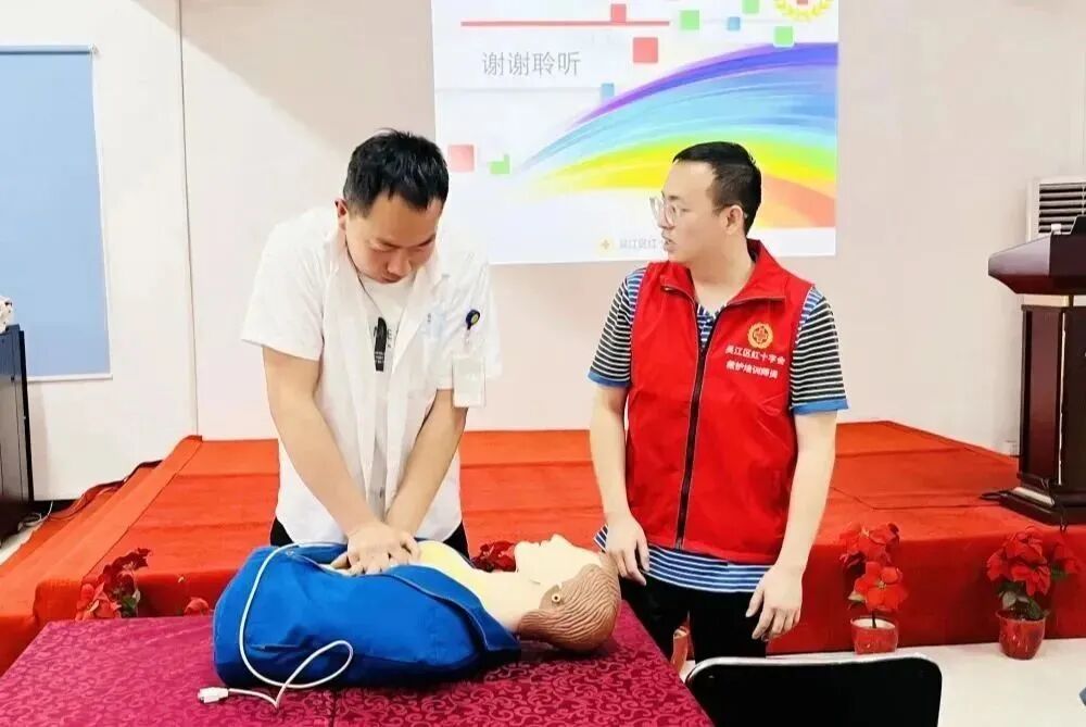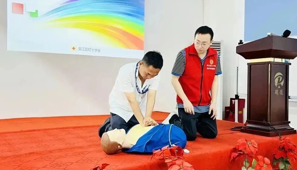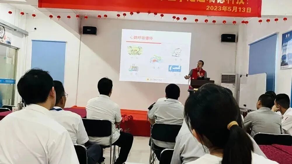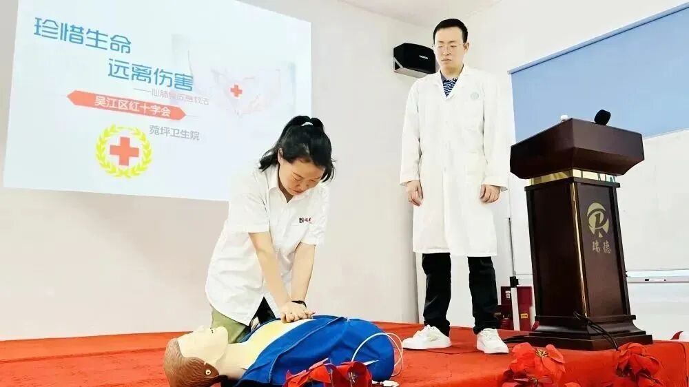 学习在瑞德| 吴江红十字会《应急救护知识》讲座发表时间:2024-01-11 09:51 ![]() 急救为人人 珍惜生命 远离伤害 人人学急救 人人懂急救 ![]() 5月29日下午,由吴江红十字会主办、横扇街道委托菀坪卫生院承办的"急救为人人"主题宣传活动走进瑞德,菀坪医院的刘凯医生为大家带来了一堂生动有趣的《应急救护知识》讲座。 ![]() ![]() 心脏复苏 理论知识 ![]() 造成心脏骤停的原因有很多,中毒、触电、溺水、创伤等等。在我国,心脏骤停抢救成功率不足1%,原因是未得到及时早期抢救。 心肺复苏(CPR)成功率与心脏骤停开始抢救的时间密切相关: 1分钟内实施,成功率>90% 4分钟内实施,成功率约60% 6分钟内实施,成功率约40% 8分钟内实施,成功率约20% 10分钟后实施,成功率几乎为0% ![]() ![]() ![]() 认真上课的我们