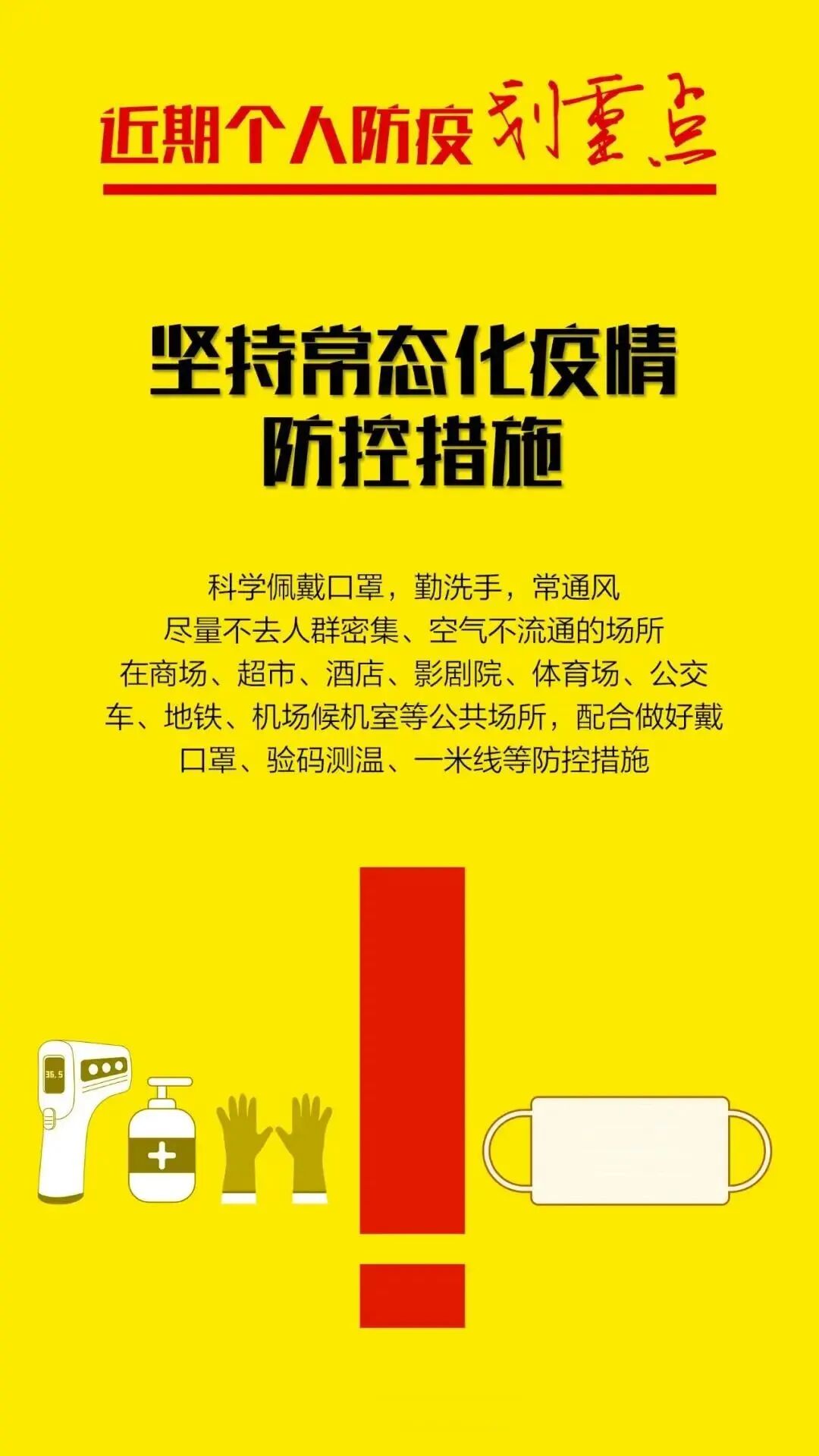 防控警钟再敲响 防控警钟再次敲响,疫情防控形势仍然非常严峻。为保护瑞德家人身体健康,保障生产,公司将疫情防控等级从一级(蓝色)提升到二级(黄色),疫情防控措施如下: 1.外来人员(招聘、送货、拜访等)保安查询健康码、行动轨迹,量测体温并做登记 2.停止中高风险地区一切出差及其他行动,其他区域非必要不可出差(若出差或行程经过中高风险地区人员需上报管理部,需主动配合隔离14天并按要求做核酸检测) 3.请假回厂人员网格员需检查其健康码、行动轨迹、注射疫苗、量测体温并做记录(若发现中高风险地区人员及时上报并隔离) 4.网格员每周一地毯式检查所有员工健康码、行动轨迹、体温并做记录(发烧或咳嗽员工不可上班,必须至医院检查) 5.离开苏州大市范围需主动上报通知公司网格员,上班前需做核酸检测 6.不聚会,不旅游,不去人群密集的公共场所(商场超市、影剧院、公交地铁等) 7.每周六全厂区管理部组织消毒并检查闭环 8.每日管理部中高风险地区通报 9.每周防疫口头宣传和培训(戴口罩、消毒、通风、量测体温、注射疫苗等) ![]() ![]() 个人防疫重点